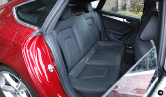 さきに書いたように、室内もA5スポーツバックの魅力だ。2810mmという長いホイールベースの恩恵もあり、空間的には余裕があり、後席も外観から想像されるよりずっと快適。大人2人が楽々座っていられる。かつ、ハッチゲートゆえ大きな荷物の出し入れも楽で、後部座席の背もたれを倒すことで長尺ものの積載も可能となっている。