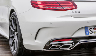 フロントのA-ウィングと呼応する高光沢のブラックディフューザーとクロームシルバーの低いトリムデザインを採用したリアビューは、デザインの統一性と、エレガントなクーペボディへの効果的なコントラストをもたらす。左右にあるスポーツフラップ付き「AMG スポーツエキゾーストシステム」のデュアルフィニッシャーパイプは、ディフューザーにインサートされている。テールランプの下には、あたらしいタイポグラフィを使用した「S 63」と「AMG」のエンブレムも装備されている。