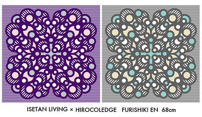 染め方は日本が世界に誇る最新技術であるインクジェットプリントで、HIROCOLEDGEの特徴である円と直線をシャープに表現した、今までにない新しい風呂敷が完成しました。