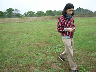 チノパンツは、毎度お馴染みCICATAのヘビーウエイトタイプ。これは太さと素材感がいい。スニーカーはLANVIN。丸いトゥがエナメルのようにツルッと光っているのがポイントですね。……となんだかんだ言っていますが、現場では子どもモデルズのご機嫌とりに必死の僕でした。
