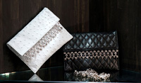「クロムハーツ」クラッチバッグ(ブラック)ポーカーチェーンメール キルティッド 25万8300円、(ホワイト)オーストリッチ クラッチバッグ ポーカーチェーンメール 32万1300円