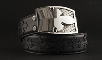 ダガーモチーフ入りのミリタリーバックルは、フォーマルにもカジュアルにも使える、シンプルながら魅力的なバックルシリーズ。レザーのベルトストラップにダガーのモチーフをあしらった華やかなストラップは、上質な重厚感と存在感をアピール
