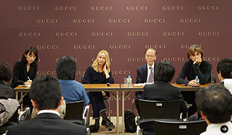 現在、日本ユネスコ協会連盟『ユネスコ協会就学支援奨学金-GUCCI奨学生』として、被災地域に住む高校生96名に対し、奨学金支援がおこなわれている。ジャンニーニ氏が初めて彼らとコミュニケーションをもった、今回のイベントから感じ取れるのは、グッチというブランドだからこそ可能な地域社会への社会貢献の責任と、普遍的な価値を未来へと伝えていくという信念だった。