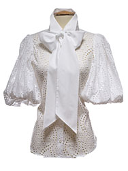 単品で楽しむ、上品な華やかさ。コットン100%の白いシャツは、アンがもっとも得意とする細かなクラフトワークが引き立つもの。透け感を活かした涼しげなシャツや、部分的なボリュームづかいでバランスよく仕上げたシャツがラインナップ。