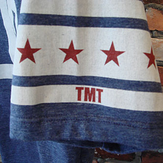 MADE IN JAPANにこだわり続けてきたTMTで初となるMADE IN USAアイテムで、U.S.A.cottonを使用したボディに、TMTの8周年にちなんで袖に「8個」の☆柄をプリント。袖口に"TMT"のロゴも入る。