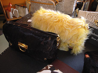定評あるレザーのほかに今回はウィメンズのファーバッグも注目で、「服に柄がなくなる秋冬は、コーディネイトの表面効果としても、持ちものに色柄があったほうが楽しくなります」という。
