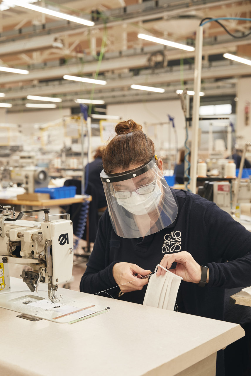 スペイン・マドリッドにあるヘタフェ工場で非外科用マスクを製造し、ロエベの従業員とその家族、ボランティア労働者に配布する。