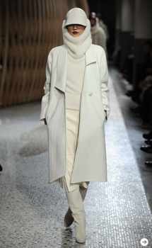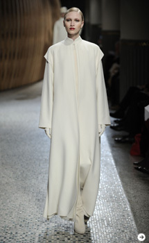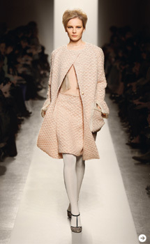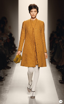 2011-12秋冬は、あたたかく包み込んでくれるウールコートが注目アイテムだ。コレクションも雪を降らせる演出が多かった。60年代と言えば、クチュールテクニックを駆使したフォルムのコートやドレスがモダンスタイルとして登場した時代。磁石の丸みのような肩線のマグネットライン、裾が内側に入ったコクーンシルエットなどカッティングでラインを作るコートだ。