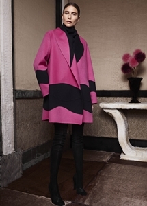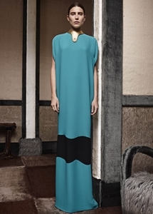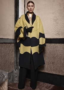 彼によるファーストコレクションとなった2014秋冬は「ウェイブ」がテーマ。ダブルフェイスカシミア、ウールなどのアーカイブ素材からインスピレーションを与えて、レトロな色合いのカラーパレットを基調に、明るいトーンのターコイズやピンクなどを絶妙にミックスしたルックが特徴だ。また、ドレープの美しいブラウスやコート、ワイドレッグパンツ、イブニングドレスにいたるまで、さまざまなテーラリングにより動きをもたらすボリューミーなフォルムを構築。技術的にもダーツやサイドシームといったテクニックを取り入れ、コレクション全体で波のように流れる「ウェイブ」というテーマを表現。ハンサムな女性像とエレガントな存在感を融合させた独自のスタイルを深く印象付けた。