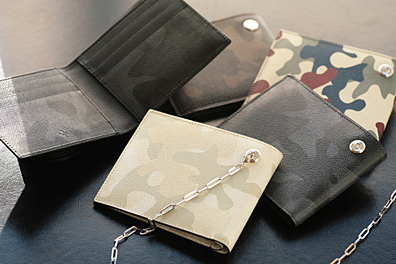 今春スタートしたレザーブランド『エム・ワイ・プラス』からは、迷彩柄をプリントしたウォレットが新登場。こちら、「大人に似合う迷彩」 がコンセプトだそうで、リアルな軍モノとは一線を画した控え目で上品な風合いが特徴。迷彩パターンもどこどこ軍の……というのではなく、いちから起こしたオリジナルである。