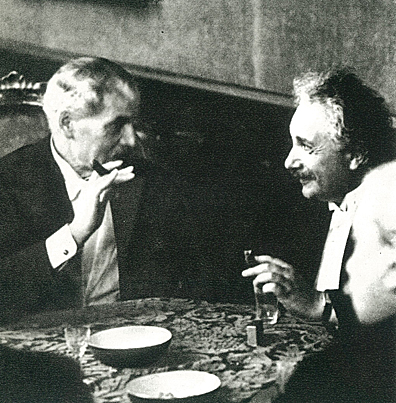食後に葉巻を燻らせながら歓談する物理学者アインシュタイン(右)と英国首相のラムゼイ・マクドナルド(左)。