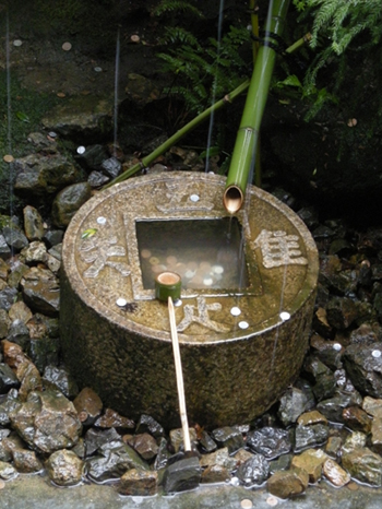 雨の日にたずねた龍安寺、その石庭の裏庭にて。真中が「口」になっていて、4つの言葉「吾唯足知」。”われ、ただ足るを知る”。う~ん深い……。