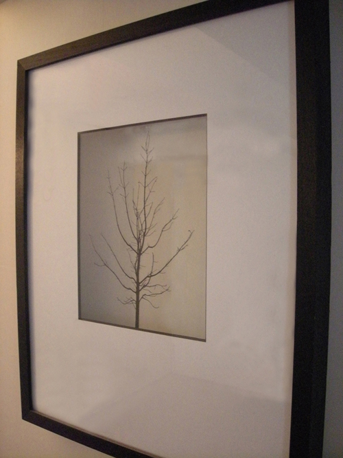 写真のネガフィルムを台紙に挟み込み、フレームとの間にスペースをもうけ、外から光を受けることで、その下地に木の枝が影絵のように投影される作品『Shadows by Ofer Geva』です。