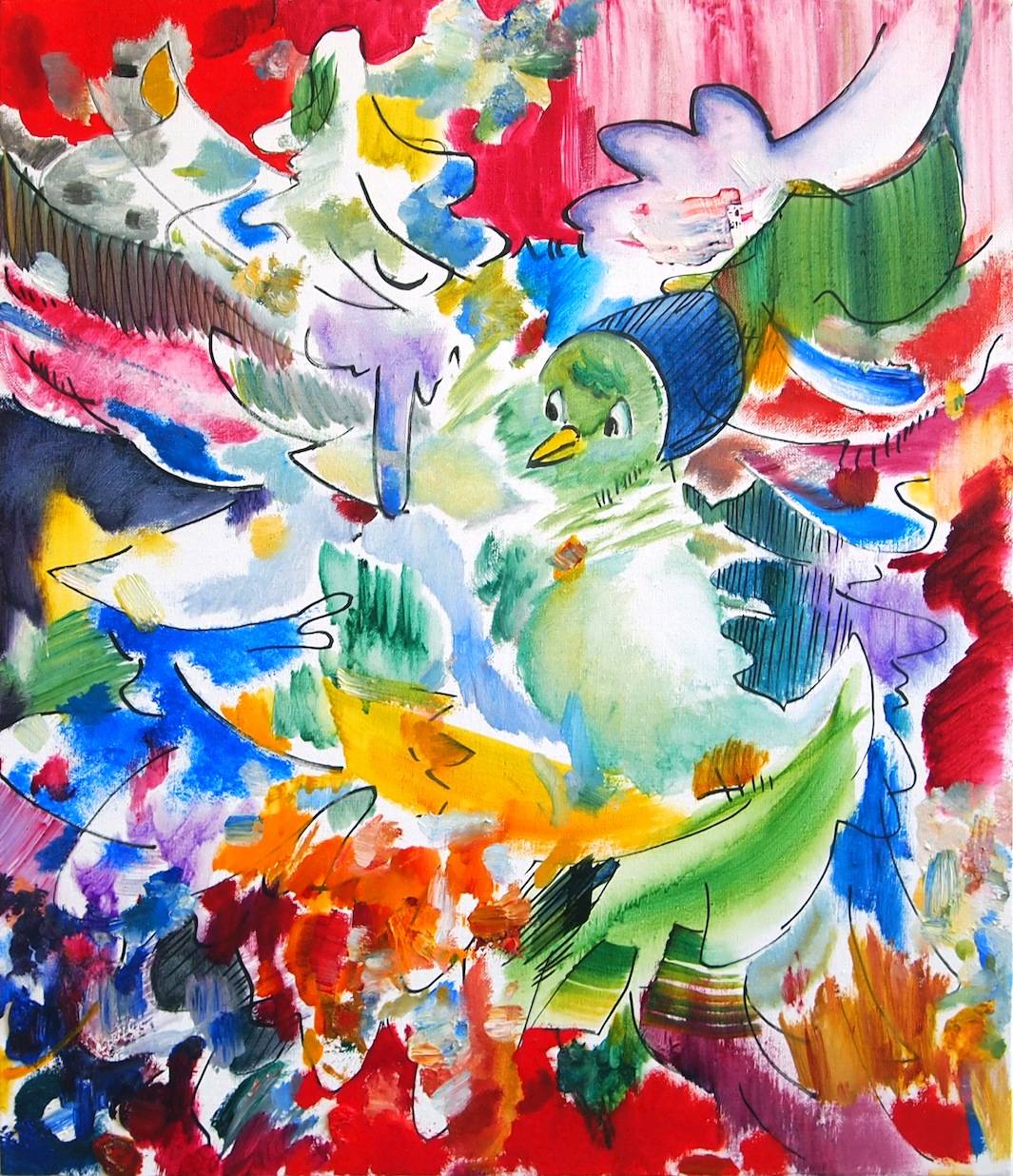 この展覧会では、浮遊感を主題に制作された新作ペインティングを発表。本展覧会についてアーティスト・樽井英樹は「白い壁に掛けられた絵画は、木枠の厚みが壁から画面を離し、中に浮いているような印象を与えます。そのことから空間に浮遊する平面をテーマに作品を制作しました。モチーフには鳥や蝶を選んでいます。鳥や蝶が、羽を広げて空中に留まっている姿が、宙に平面が浮いているように見えるからです。作品では、羽の広がりや羽ばたく動きを色彩と線でより平面的に抽象化しています。浮遊感を感じさせる展示になっていればよいなと思います」とステートメントを寄せている。
