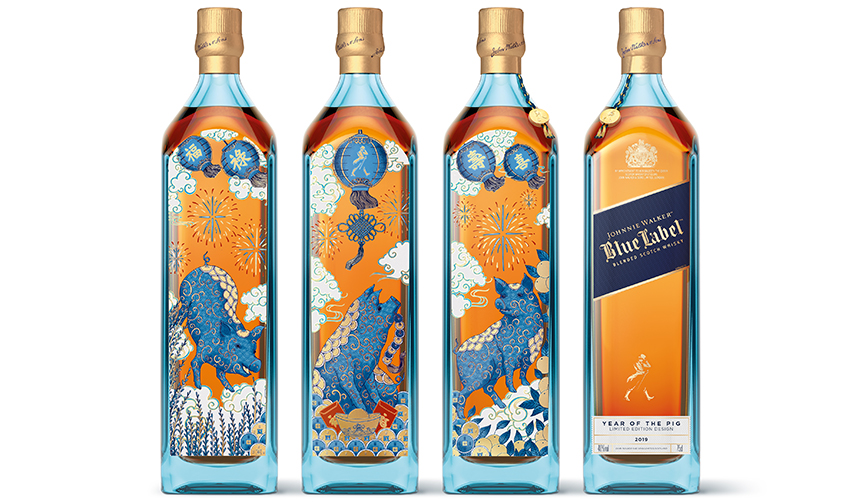スコッチウイスキー「ジョニーウォーカー ブルーラベル」に2019年の干支、亥にちなんだ数量限定のデザインボトル「イヤー オブ ザ ピッグ」が登場した。