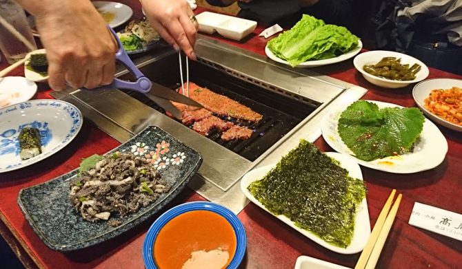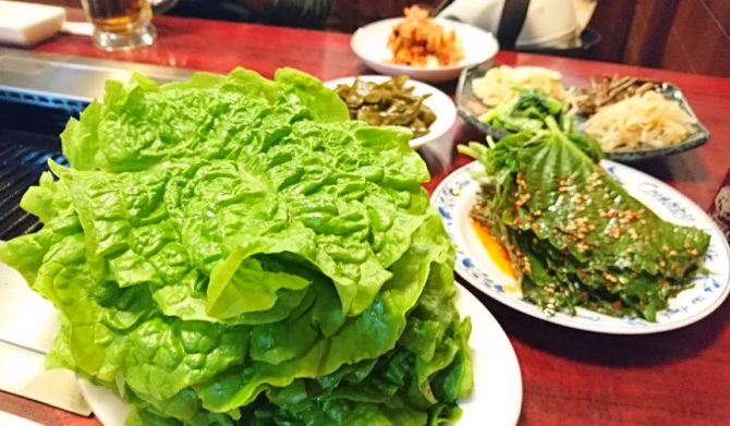席に着いた時には、キムチ、サンチュ、荏胡麻、青唐辛子、海苔、ナムル、全てがスタンバイされている韓国仕様。メニューがないから(言えば出してくれるが誰も見ない)頼む肉はお店との阿吽。タン、カルビ、ロース、イチボ……どれも極上。