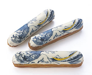 「ラ・ヴァーグ」は、フォションのアジアパシフィクデヴェロップメントシェフのニコラ・ジャンベール氏がデザインを手がけ、“波”をモチーフに、葛飾北斎の富嶽三十六景を模した、これまでにない斬新なエクレア。きめの細かいカスタードクリームに有塩バターで風味づけをした、海を連想させる夏らしい味も魅力的。