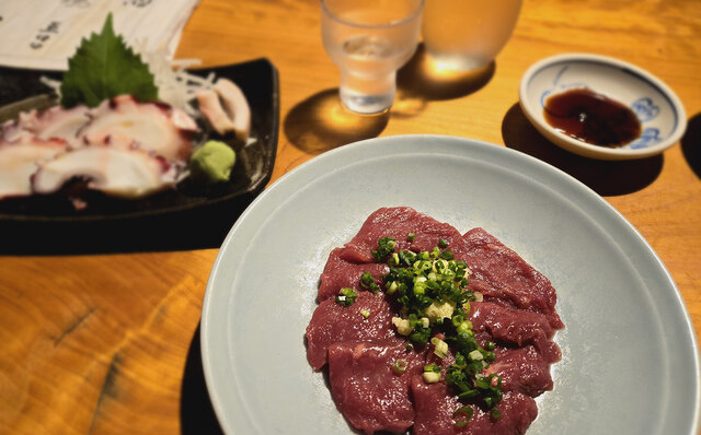 明治30年創業、森下の馬肉専門店。さくら鍋、さくら刺し、あぶら刺し、安価で高栄養価で低カロリーの馬肉は、どぜう同様に精がつく食べ物として古くから庶民たちを魅了してきた。なぜ馬肉は「さくら」と呼ばれるのか、肉食禁止の文化が強かった江戸時代に隠語で「さくら」と呼ばれた説、馬肉は春が美味しい説、馬肉の鮮やかな色あいが桜を連想させる説、千葉県佐倉に幕府の牧場があった説、高価な牛肉の偽もの=さくら説、諸説あるらしいが、定かではない。なんにせよ、初任給が出たときに両親と吉原にさくら鍋を食べに行ったくらい、自分の中でさくら鍋は好き。何よりこの佇まいは、店の暖簾を眺めるだけで酒が飲めそう。