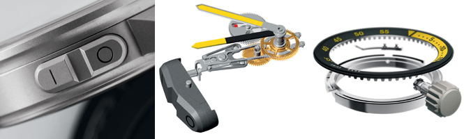 これにより潜水の経過時間の計測とは別に、浮上や減圧調整のための時間の長さなども測ることが可能。クロノグラフのリセットボタンと同軸のリューズで操作可能なインナーベゼルと組み合わせれば、複数の経過時間も計測できる。この世界初の機能により、またしてもIWCはダイバーズウォッチの歴史に新たな功績を記すことになったのだ。
