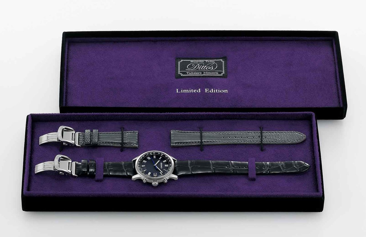 この数量限定モデルは、“紳士の装い”を熟知する水落氏ならではの視点でデザインされ、先進的なワールドタイム機能を備えたソーラー電波時計でありながら、流行を超越したクラシカルなルックスを併せ持つ、洗練されたスーツスタイルに相応しいウオッチに仕上げられた。